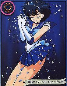Ella es la sailor scout que corresponde a Mercurio. Como humana es una jovencita muy pero muy (en serio super muy) estudiosa y compañera de Serena en la escuela. Sus principales poderes (el elemento que maneja ella es el agua a pesar de que en Mercurio no la hay) son las burbujas congelantes y fulminantes de Mercurio. Su transformación la lleva acabo pronunciando las palabras: